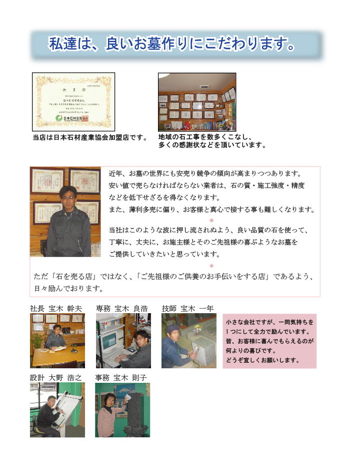 福井県越前市にある「とことんこだわる!」をモットーとしたお墓やさん。宝木石材有限会社です。