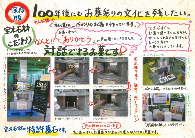 福井県越前市にある「とことんこだわる!」をモットーとしたお墓やさん。宝木石材有限会社です。